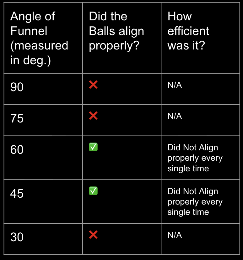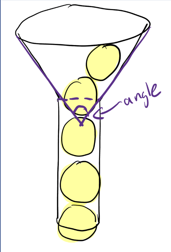 Bad funnel angle: balls block each other