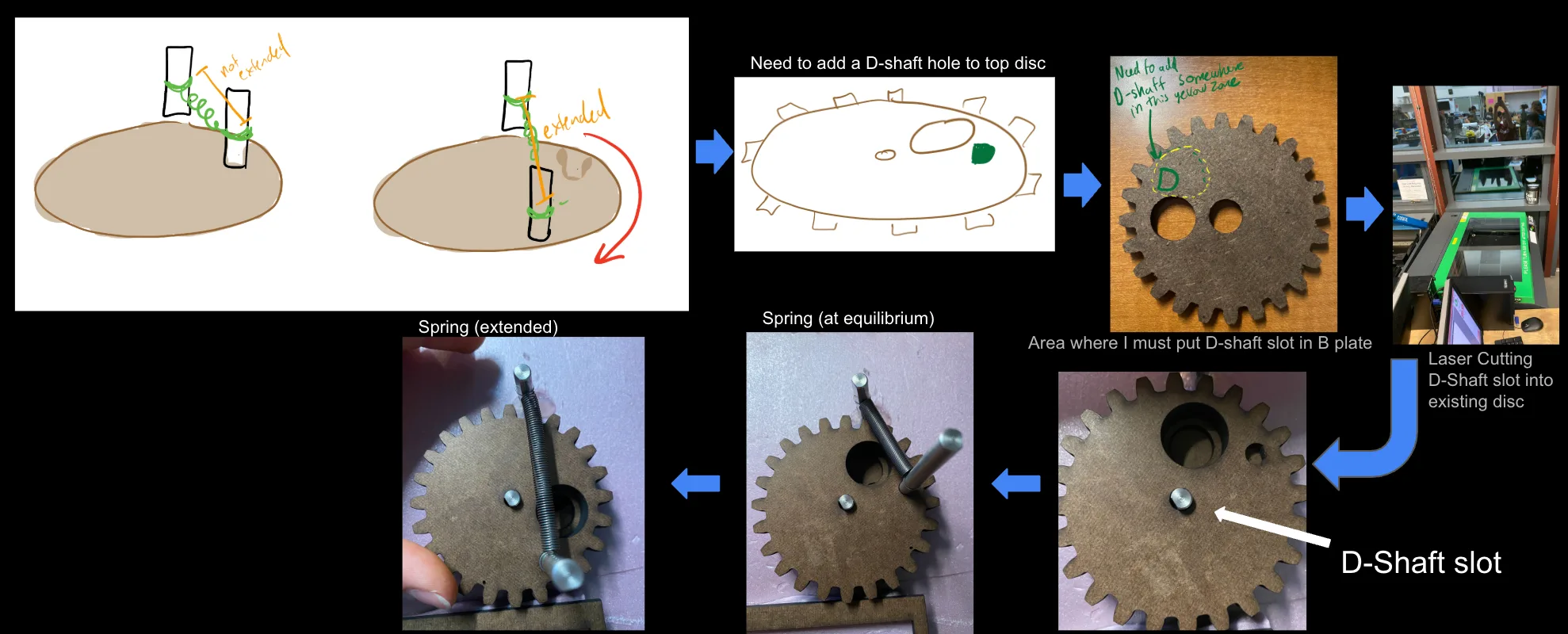Tested attachment locations. Found optimal slot for linear stretch + max extension. Incorporated hard stops.